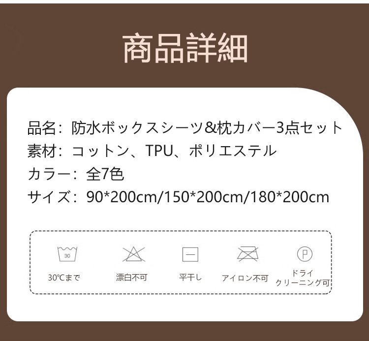 防水ボックスシーツ&枕カバー3点セット